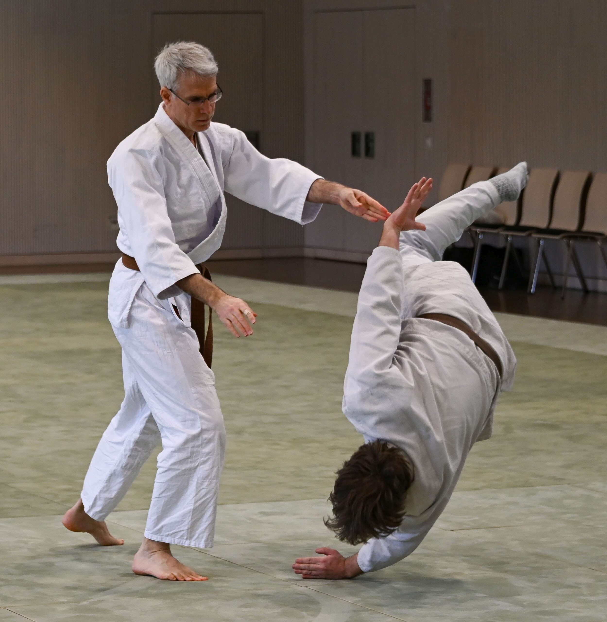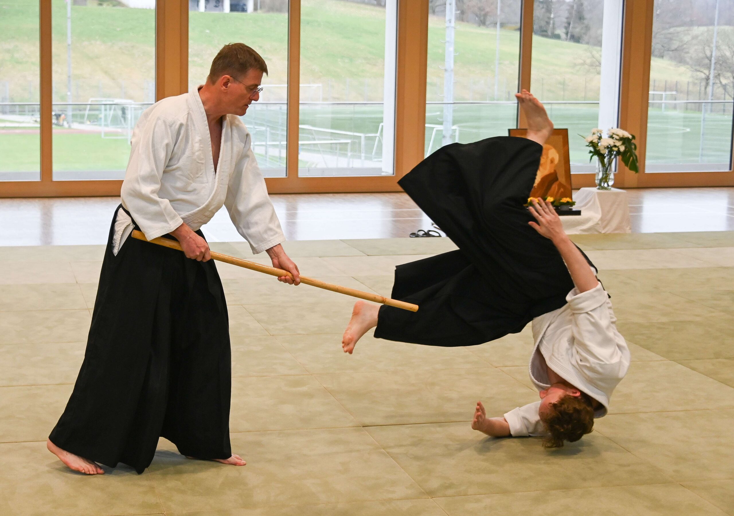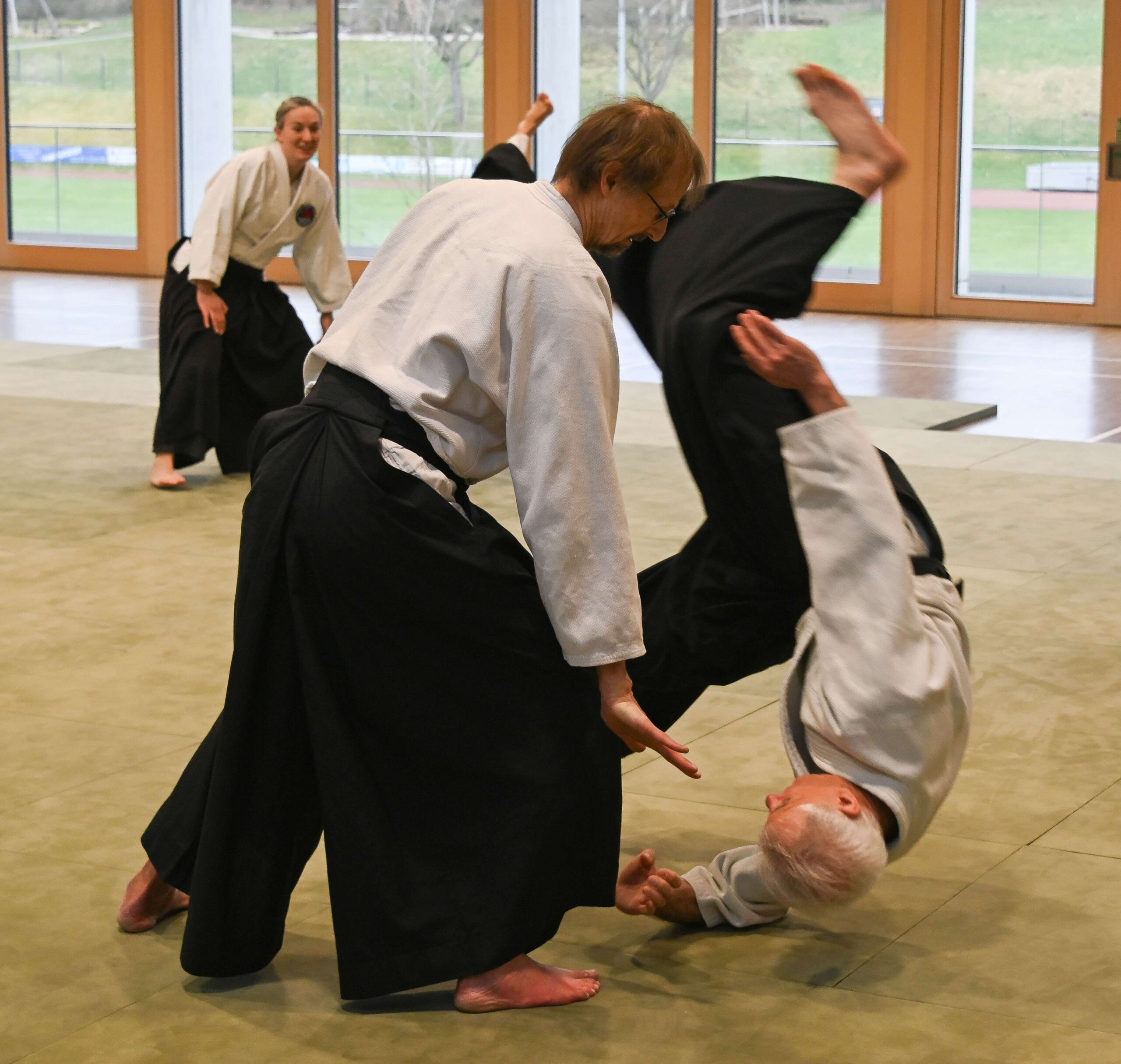 Am 14. und 15. März fand in der Musberger Sport- und Festhalle der Bundeslehrgang der Aikido Union Deutschland statt. Als Lehrer konnten wir Peter Holtmanns, 4. Dan, gewinnen. Der Einladung waren knapp über 30 Teilnehmer gefolgt. Vom 6. Kyu bis zum 4. Dan war alles Vertreten – auch für den Lehrer eine gewisse Herausforderung. Die meisterte Peter in gewohnter Manier äußerst souverän. Wir haben uns sehr gefreut, dass so viele Aikido Begeisterte zu uns gekommen sind.