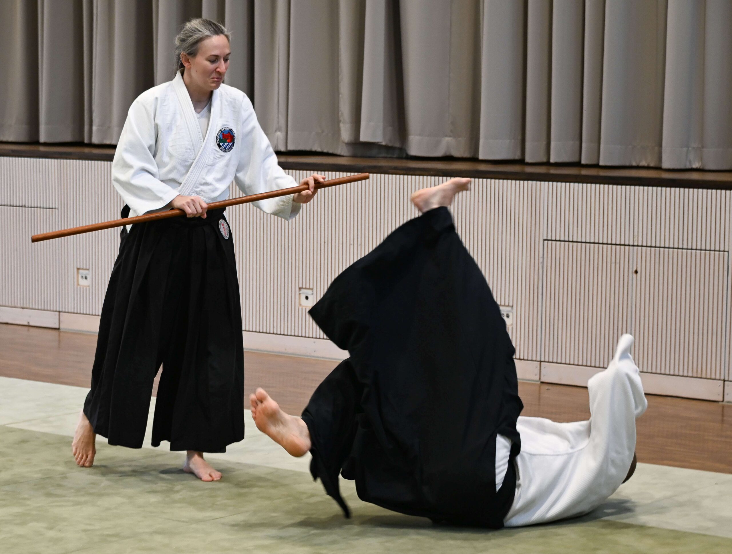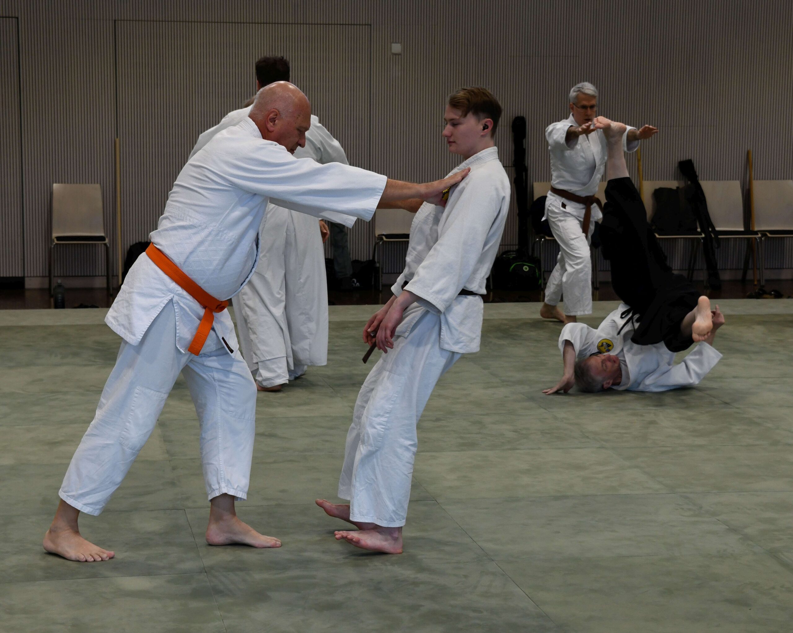 Am Samstag lag der Trainingsschwerpunkt auf verschiedenen Grund- und Fortgeschrittenen Techniken. Im Mittelpunkt stand die richtige Körperhaltung und die Bewegung aus der Körpermitte heraus. Die unteren Kyu-Grade waren natürlich gefordert, da viele der gezeigten Techniken zwangsläufig weit über den eigenen bisher erlernten Fähigkeiten lagen. Spaß hatten aber auf jeden Fall alle und die ersten beiden Stunden gingen wie im Flug vorbei.